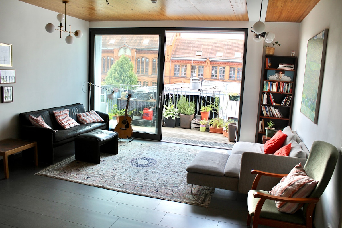The duplex is located in one of the most beautiful areas of Berlin (Mitte/P-Berg), just some meters from Zionkirchplatz away in an historical building. Located in the 4th and 5th floor of the garden house, this apartment offers both privacy, absolute calm and beautiful views as also the greatest restaurants/bars/spots very close. The apartment has been totally renovated with highest quality materials and offers a unique premium experience in the heart of the capital.