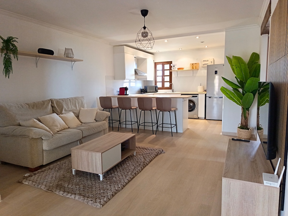 Beautiful newly renovated apartment located by the sea in the coastal city of Águilas. It has two bedrooms, one with two separate beds and the other with a 1.50 cm bed. Separate kitchen equipped with all appliances and a bathroom with a shower. It has a washing machine and a large balcony overlooking the ocean for enjoyment. The sofa can be used for sleeping by removing its seats. It is equipped with air conditioning and duct heating. It also has ceiling fans.