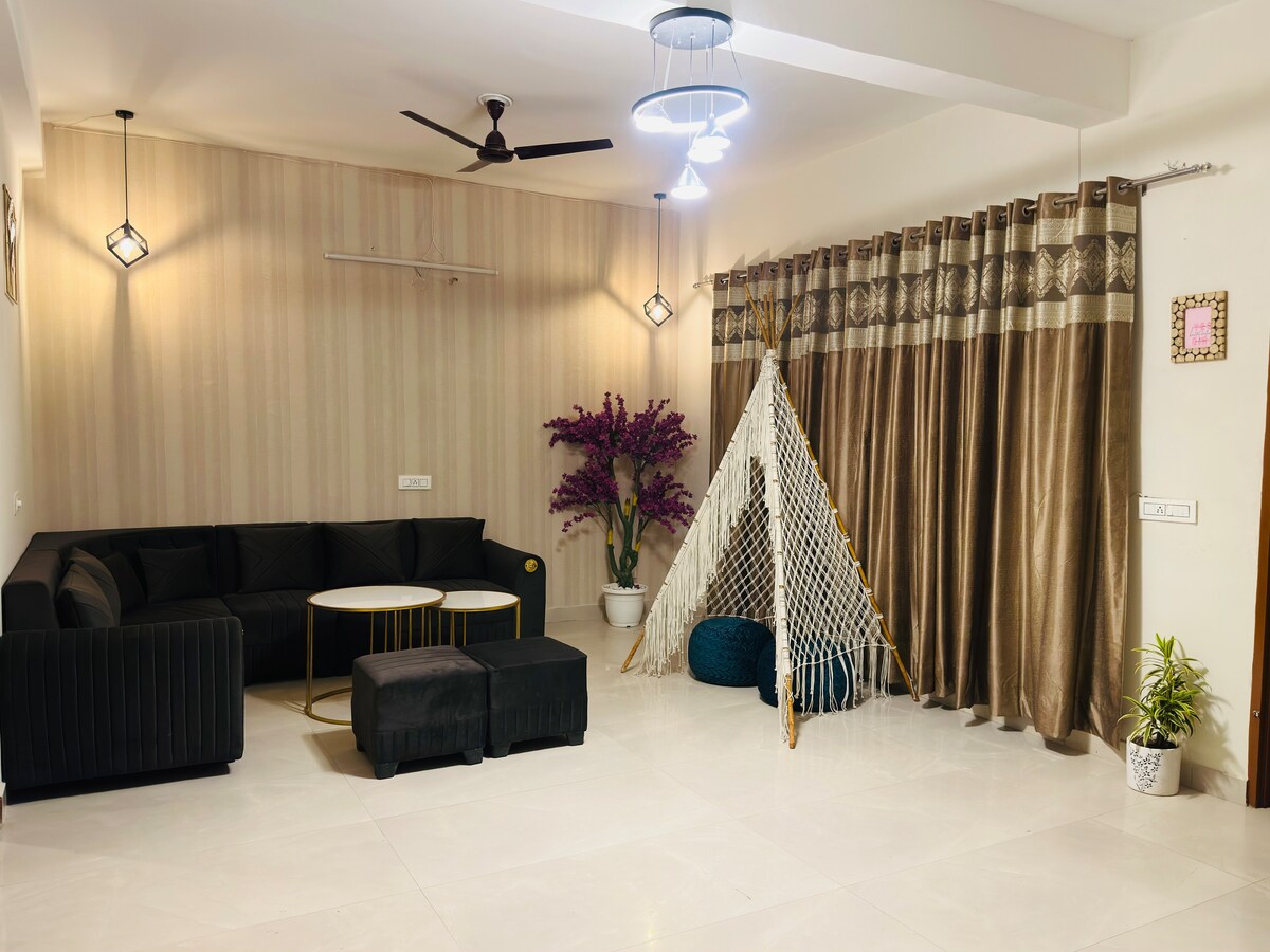 Premium Guest House in Mohali, Panchkula – 15 min from Chandigarh Airport! Celebrate Diwali parties or wedding stays together with friends and family under one roof! Unlike hotels where everyone is restricted to separate rooms, our spacious Airbnb lets your group enjoy shared living areas, a fully equipped kitchen & warm home vibes. With spotless interiors, 5‑star hygiene, WiFi, and power backup, it’s perfect for festive gatherings, family functions & relaxed stays near Zirakpur highway.