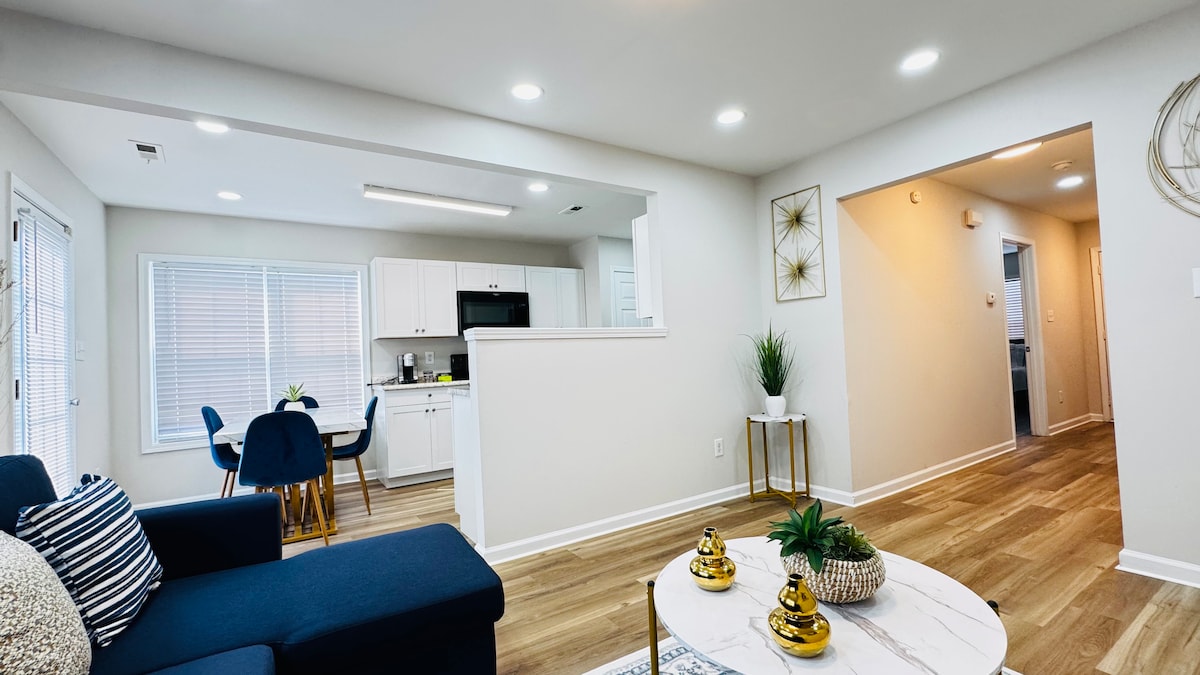 Welcome to our stylish 3 bedroom 3 bath townhome designed to accommodate both work and leisure activities. Our home is located 10 minutes from the Airport and Uptown Charlotte. We are also centrally located close to shops and restaurants. The space Bedroom 1: King bed, TV and bathroom. Bedroom 2: King bed, TV and bathroom. Bedroom 3: Full bed, TV and bathroom. Kitchen: Fully equipped kitchen with stainless steel appliances. Dining area has seating for 6.