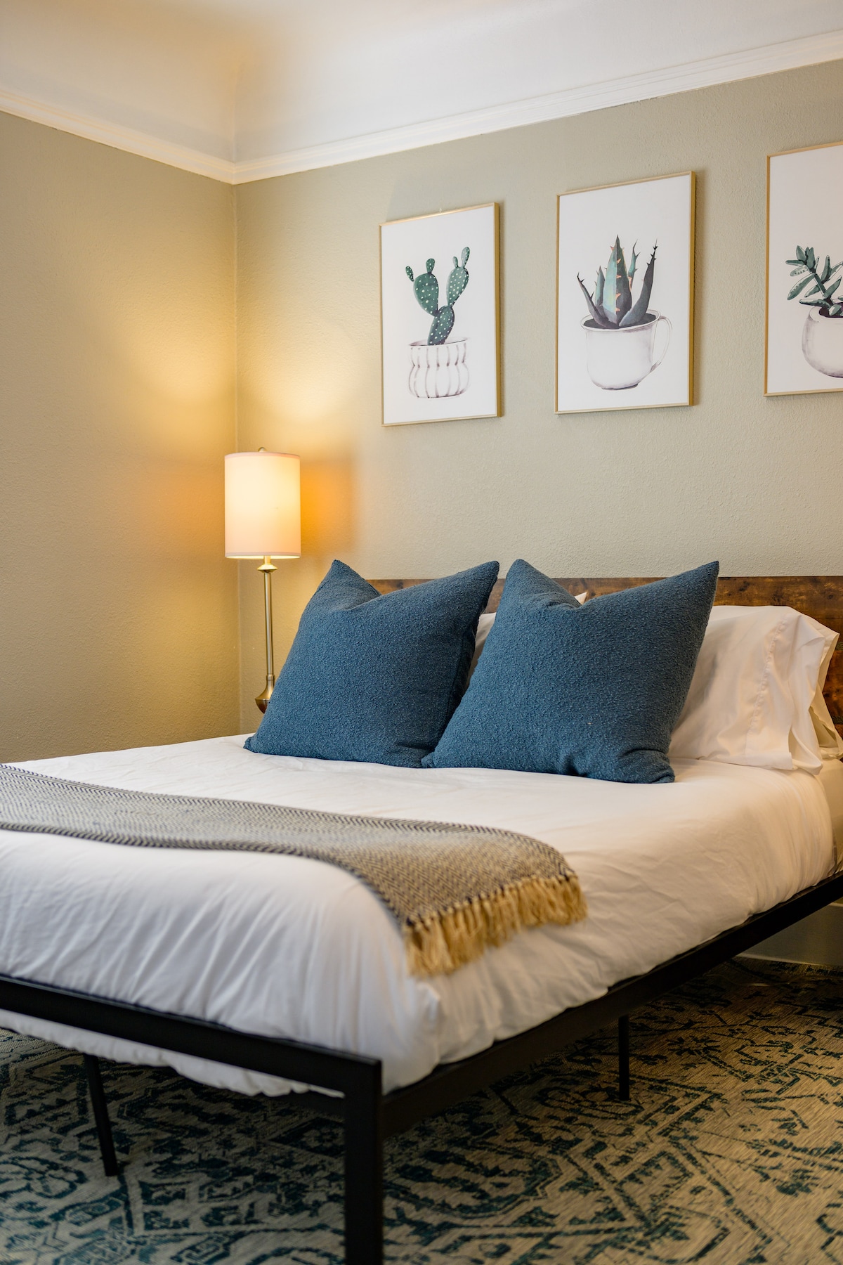 A comfortable space with private entrance and bathroom. Light & airy with high ceilings and garden view through a large picture window. Queen size bed, ceiling fan, gas heater\fireplace, 35" flat screen swivel TV, Keurig coffee maker, and a large roll-in shower. Mini fridge, microwave, spacious patio & fenced yard right outside the door. There is NO KITCHEN. Dogs welcome with pre approval. $25.00 dog fee per stay. Due to extreme allergies cats are not allowed.