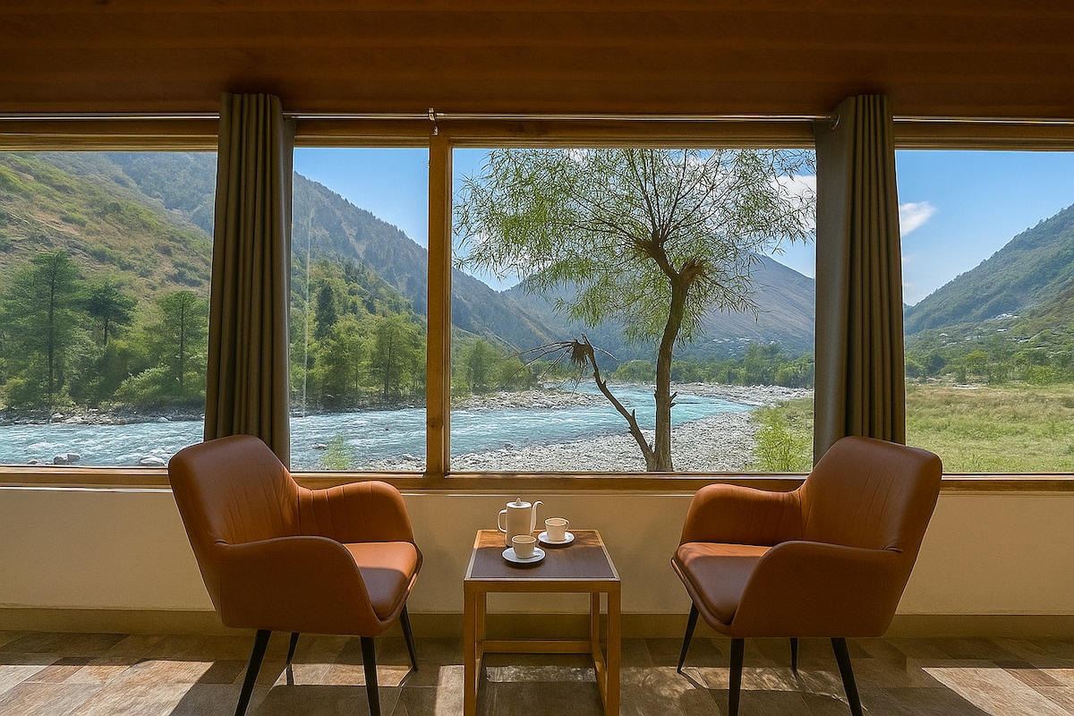 Sunrise Studio | River View Balcony | Tirthan Stay