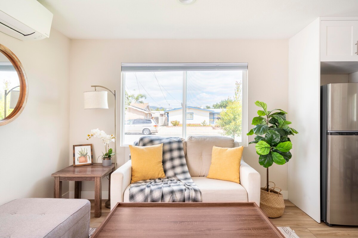Welcome to our cozy and private 1 bed/1 bath guest house, nestled in the heart of Poway. Our space offers a queen-sized bed, spacious bathroom with a walk-in shower, a living area and kitchen with large windows providing great natural lights. The kitchenette is well-equipped for you to channel your inner chef and comes with a fully stocked coffee/tea station. Stay connected with high-speed Wi-Fi and unwind with Smart TV entertainment. Enjoy the luxury of a private entrance for added privacy.