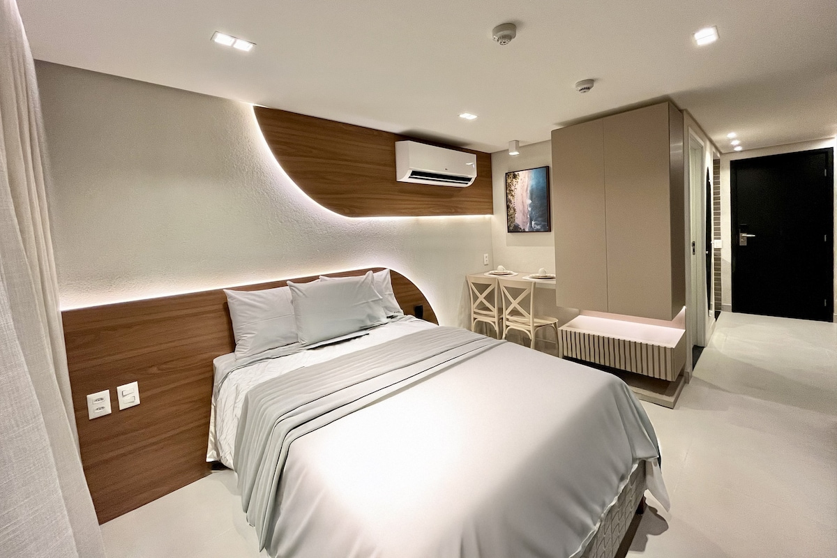 Premium Flat by the Sea, on the sand of the best beach in João Pessoa. We are located in Praia do Bessa (Jardim Oceania), close to the best bars and restaurants in the city, a gas station, bakery, pharmacy and shopping malls. The apartment is prepared to accommodate up to 3 people, as we have 1 double bed and 1 auxiliary single bed. In the kitchen, we have a microwave, induction stove, minibar, blender, coffee maker, sandwich maker and kitchen utensils.