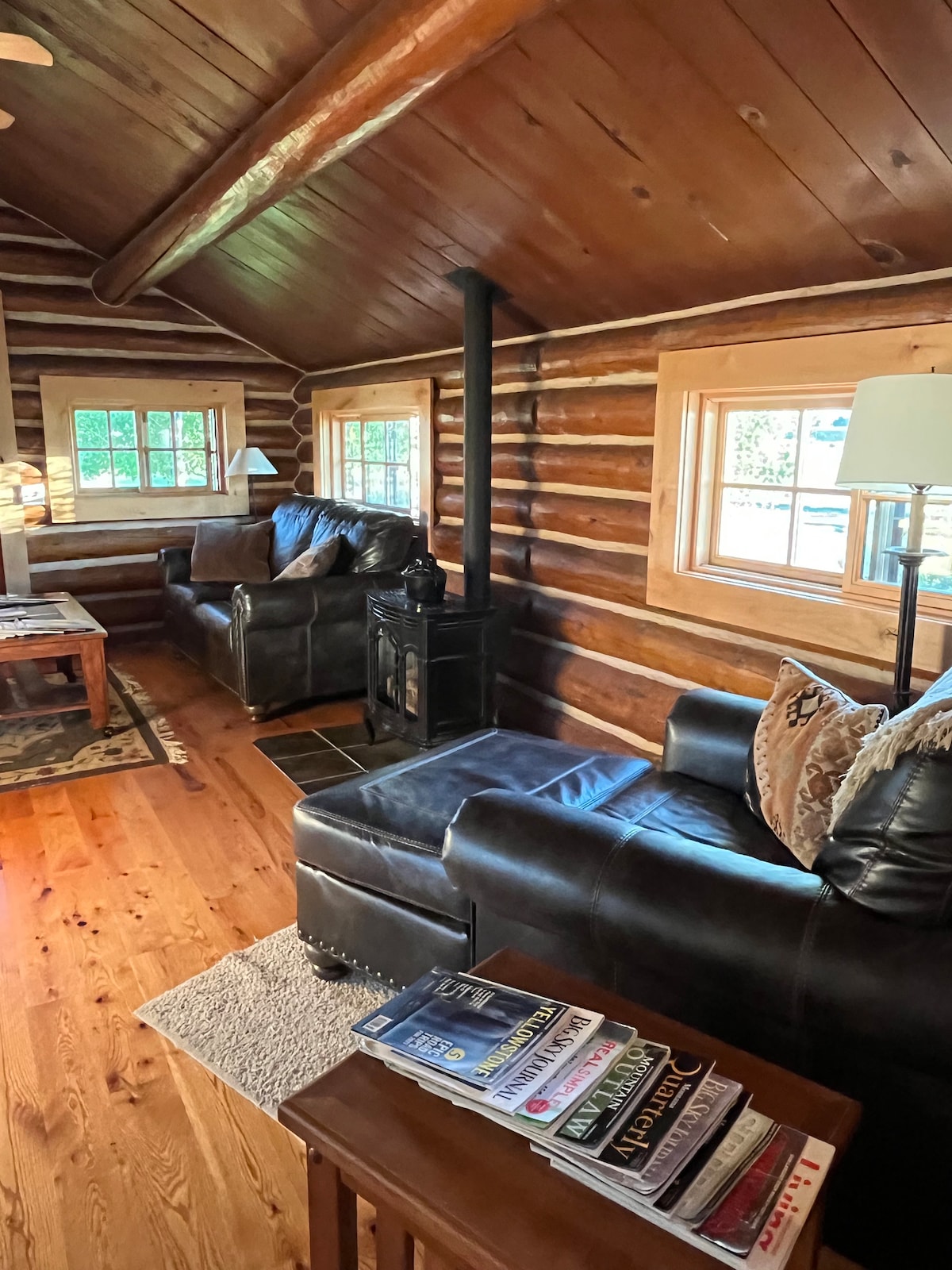Tucked into the woods at the end of the road just 13 minutes from the heart of town, this cabin is a treasure. Cliff built the place himself; each tree sawn on his tractor-powered sawmill. We added family antiques, new mattresses and original art (lotsa comfort and love). The covered porch is high in the trees with breathtaking views 1000 feet above the Yellowstone River. A stellar location, you will be hard-pressed to find a more memorable authentic cabin experience during your Montana travels