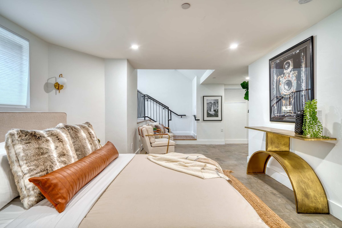 Clean and cozy getaway in an amazing central location. Walk just a few blocks to shopping on NW 23rd, restaurants in the Pearl, Powell's Books, the West End, Providence Park, or even Downtown. This modern 2 bedroom private basement apartment occupies a full floor of a 1907 Craftsman in the heart of the Alphabet Historic District. Features include king mattresses from Helix for a great night's sleep, a kitchenette with fridge, microwave and Nespresso maker, and original art from local artists.