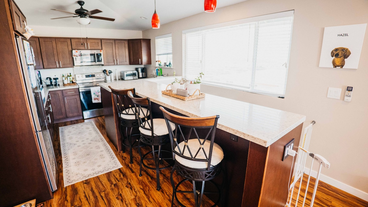 Located on a hill overlooking Honolulu and the majestic Diamond Head crater, this two bedroom, two and half bath plus bonus sleeping space in Manoa Valley features gorgeous custom touches and a large lanai that’s perfect for a barbecue. The home is also pet friendly (for an additional fee of $250) which is difficult to find. Contact HVROAHU com for more information!