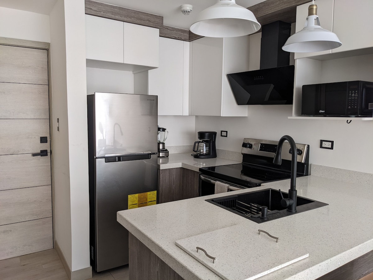 You'll love staying at this place 😊 it's unique, it has its own style, it's automated, you control everything from your comfort with Alexa, ideal for couples or executives looking for a modern place to work and rest from home in a super comfortable King bed, you can watch your football game on the 65-inch TV with Netflix, Disney, Amazon Prime, perfect for a movie night.🍿 It is located on the 1st floor of Tower 2 ✋Please read the rules before booking.