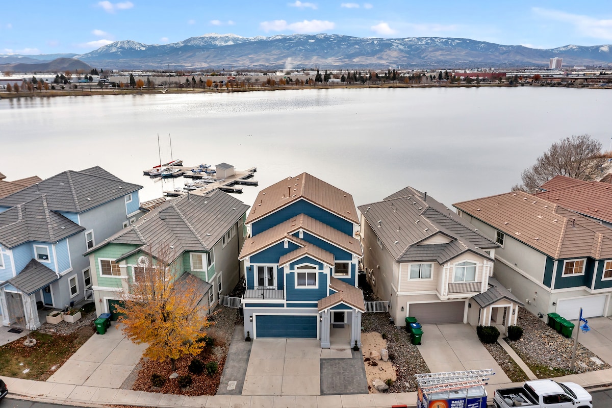 Sitting on the Sparks Marina, this home has a private dock with a kayak, 7 seater hot tub, and fire pit in the spacious back patio on the water, a warm fireplace in the living room, an arcade, and plenty of space for you and your family or friends to stretch out. Close to Tahoe and skiing, only a 35 minute drive to Mt. Rose and 48 minutes to Incline Village. Super fast internet. Whole-home audio. Home theater with surround sound. Fully equipped kitchen. Air purifiers. Extra towels and linens.