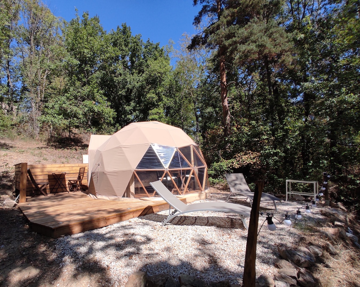 Experience a unique getaway in a comfortable dome. Enjoy a terrace, private bathroom, breakfasts included, and a couple's box. The plus: private access from 1:30 p.m. to nightfall (swimming pool, Jacuzzi, sauna) accompanied by 2 glasses of Champagne or cocktails or soft drinks of your choice. A magical moment just for you 🥰 P.S. We offer boards for you to enjoy this special moment (by reservation)