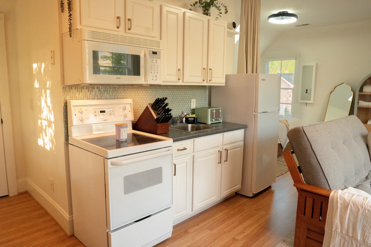Just 10 mins off of route 77, Fort Jackson & Downtown COLA only 20-30 min drive. Studio’s located in a beautiful family-friendly, suburban Lake community in Columbia SC with grocery stores & gas stations within minutes. Enjoy a night in equipped with movie screen & projector, then finish the night by melting your worries away into an incredibly soothing king size memory foam bed. Let our all-in-one washer/dryer do the work for you and wake up to a finished cycle and sounds of SC’s native birds.