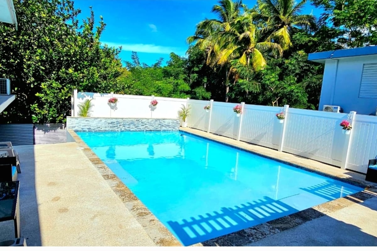 Experience island living in this stunning 6 bed 3.5 bath retreat in the heart of Rincón! Walking distance to beaches, restaurants & shops. Featuring an expansive open-concept layout this property is perfect for groups & families. Take a dip in the saltwater pool with cascading waterfalls, lush landscaping & a cozy outdoor gazebo with BBQ area. Complete with gated entrance and an electric car charging port, this property offers convenience, privacy and elegance for an unforgettable stay.