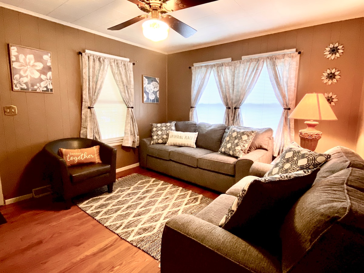 Our family's best memories occurred here - so we're opening our doors to groups looking to make memories of their own. With 3 bedrooms, 5 beds and free parking, there's room for everyone. Our huge family room with sleeper sectional, office nook, back deck, large yard, WiFi, large TVs, and games are reasons to stay in - but if you venture out, we're 10 minutes from the riverwalk and parks. With modern farmhouse decor, Retreat on Rosemary says, "Welcome to the South, y'all!"