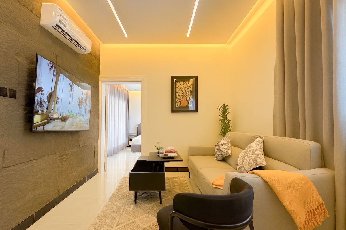 This unique place has a style all its own—designed to offer comfort, elegance, and a touch of luxury. Each room is thoughtfully furnished with chic décor and high-end finishes. Enjoy premium amenities including a Cinema VIPS experience, QLED flat-screen TVs, tea/coffee machines, hair dryers, plush towels, and a complimentary welcome pack. Whether you're here for a short getaway or a longer stay, you'll feel right at home with our modern comforts and personalized touches.