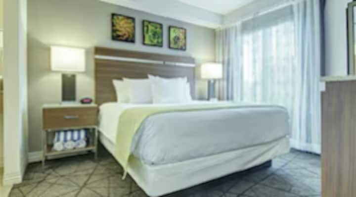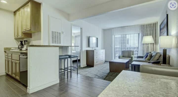Experience the thrill of the Formula 1 Grand Prix in Las Vegas with a perfect getaway! Enjoy 3 nights and 4 days in a beautiful 1-bedroom, 1-bath private resort condo, complete with a full kitchen, dining room, and living room. Relax and unwind with amenities like an activities center, business center, and bar. Explore the vibrant Las Vegas Strip, featuring world-class casinos, and breathtaking shows. Make memories in the heart of this iconic city while indulging in the excitement of F1 racing!