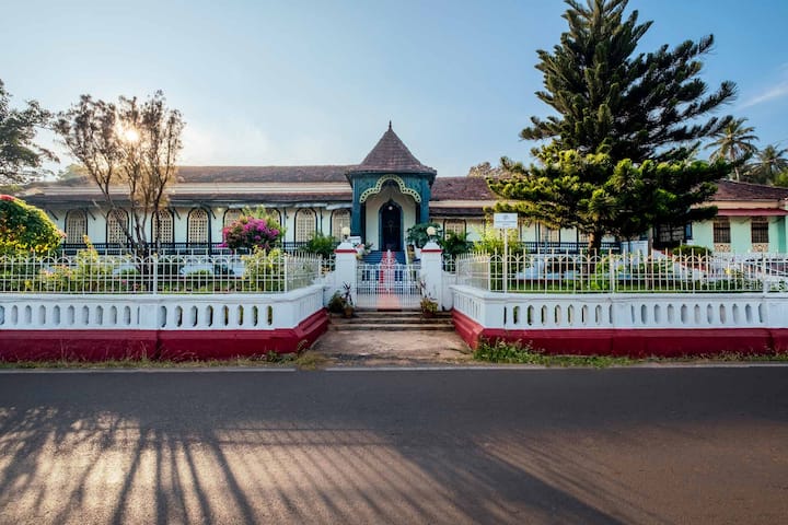 Tucked away in pastels of Goan greens lies this luxe holiday home offering a spectrum of experiences to indulge in. These carefully designed experiences ensure that you and your tribe have a pleasant and unforgettable stay with us. Start your day with an elaborate breakfast, as you soak in the refreshing breeze and the splendid views that surround this abode. Enjoy a calming soak in the outdoor swimming pool while overlooking the vivid hues of the surroundings. The airy sit-out spaces and interiors are quite ideal to immerse yourself in some light reading. Guests can explore, stroll or play along the lawn overlooking the surrounding greenery. The guests can also visit the in-house museum with prior permission. Grab your preferred choice of drink at the bar. Catch screenings of some up-and-coming rom-coms and action thrillers on the home theatre system. Venture out and explore the nearby treks, Goan markets, eateries, and of course the beaches. This charming homestay is bound to leave you with a trove full of memories.
