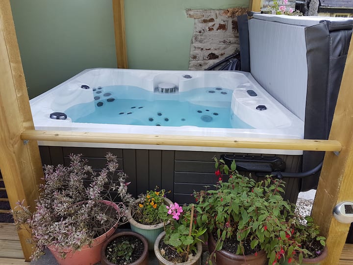 Sweet cottage with private hot tub, hidden away in a pretty garden in the town centre. We pay the parking. 2 mins walk to car park and all amenities. Perfect for exploring Bodmin's cycle paths and all of Cornwall. Ideal for a couple plus two younger children. Please note mobile signal patchy indoors. WiFi calling available. If booked, try our sister property: Priory View Apartment https://www.airbnb.co.uk/rooms/48844549?guests=1&adults=1&s=67&unique_share_id=e94fc063-0972-41a5-91b5-39e8cdd19012