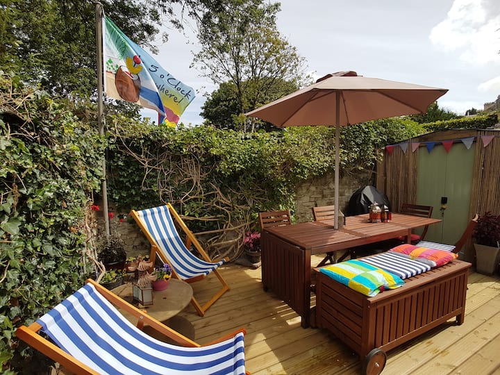 Our property is pretty, clean, practical, private and secure with parks and cycle paths nearby. Accommodation comprises: Two bedrooms: a double bedroom + small second bedroom with bunk beds. Open plan living room and dining kitchen. 42" TV with Roku Streaming device so you can log-in to your favourite streaming channels. Upstairs Shower Room. High chair and travel cot available on request. Private Garden, but please note we live next door and our back door opens into the garden. We will respect your privacy at all times, but will need to access the garden from time to time, eg emptying bins, servicing the hot tub etc. Free parking in Priory Car Park nearby (we supply cash to cover your stay). If you book with us, and we hope you do, please make sure you have switched on 'Notifications', so that you see any messages from us with directions, local information etc.