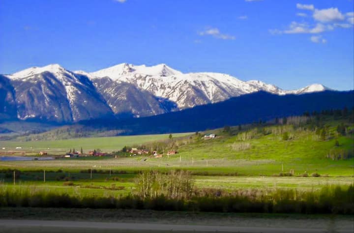Great views with 4 bedrooms & 2 living areas. You have Spectacular views of Henry's lake and the Tetons. Only 18 miles to Yellowstone National Park. You have access to two porch areas for BBQing & enjoying the outdoors. Inside you have many amenities to entertain your group, including a large kitchen, big screen TV, AC, dishwasher, utensils, pots & pans, microwave, slow cooker, towels, hairdryer etc. As your hosts, we are committed to ensuring you have a memorable experience.
