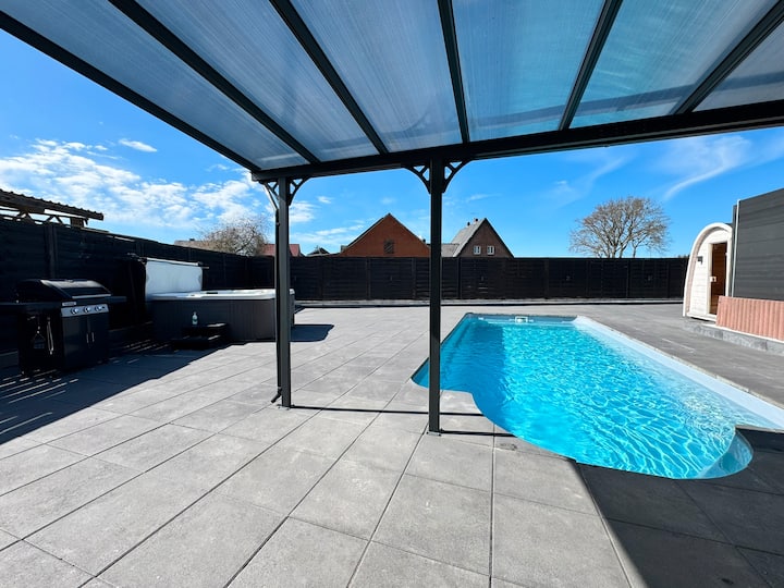 Large holiday home with 4 bedrooms, swimming pool, BBQ