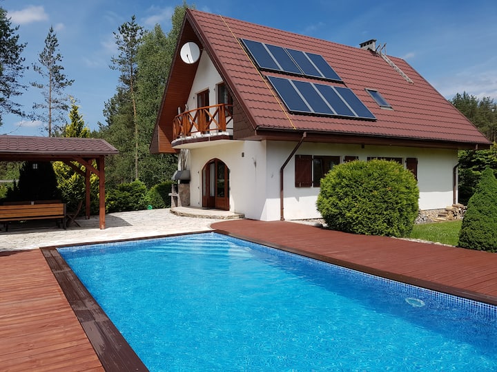 Fenced garden, house, sauna, swimming pool, hot tub, Kashubia