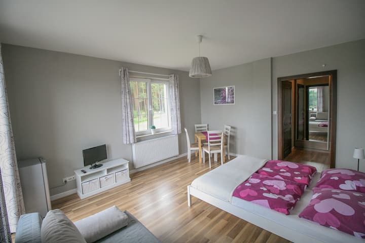 Forest cottage/hot tub/fireplace/sauna/lake Kashubia