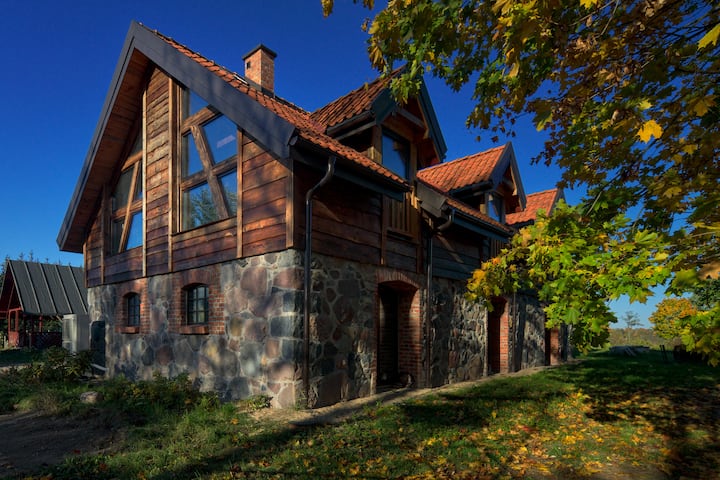 ECO wooden cottage in Kurpie. Pond, forest, sauna.