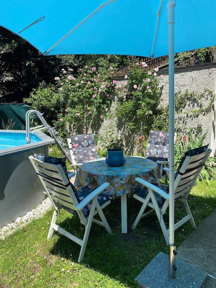 Holiday home with garden, pool,parking space