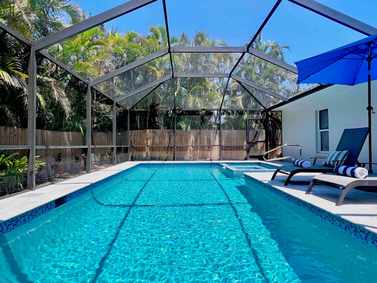 Unwind in the privacy of your very own tropical oasis in the heart of Naples Park/Vanderbilt Beach area. This sun-filled south facing home showcases a new pool w/heated spa w/wrap around sundeck for the ultimate relaxation. This zen-like 2 BR (Kings), 2 BA retreat is close to Vanderbilt Beach and Mercato is just minutes away! Newly renovated and beautifully decorated. Enjoy your morning coffee from the lanai, the perfect place to contemplate the ultimate decision: Beach or Pool Day?