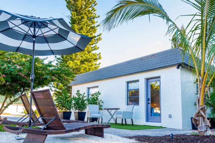 This serene, private-entry upscale studio is fully furnished, has a screened patio, and looks out onto a fenced back yard that includes tropical fruit trees and a chickee hut. Located in Naples Park, close to two public beaches and down the street from the Mercato, an upscale mixed use development with a Whole Foods Market and many small shops, restaurants and bars. Newly renovated, with zero-entry shower, heated towel rack, bidet, high-speed Wi-Fi, PC, TV, and full kitchen.