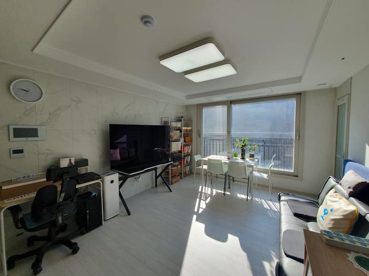 [OPEN SALE] Free parking, 55TV, Netflix, 3 minutes from Jeongja Station, hotel bedding, open view