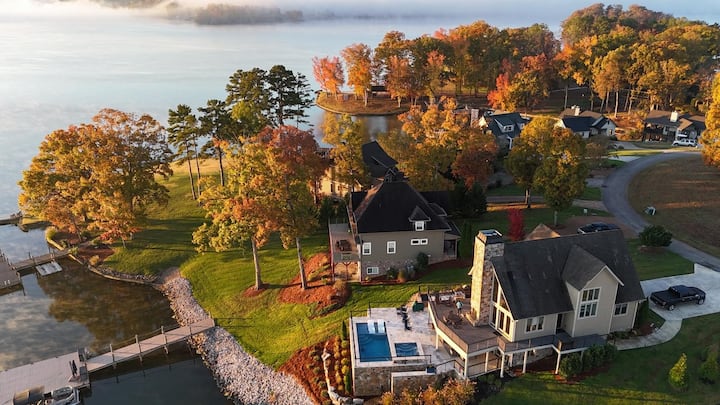 VIEWS! Luxury Lake w Pool, Spa, Fireplaces & Dock