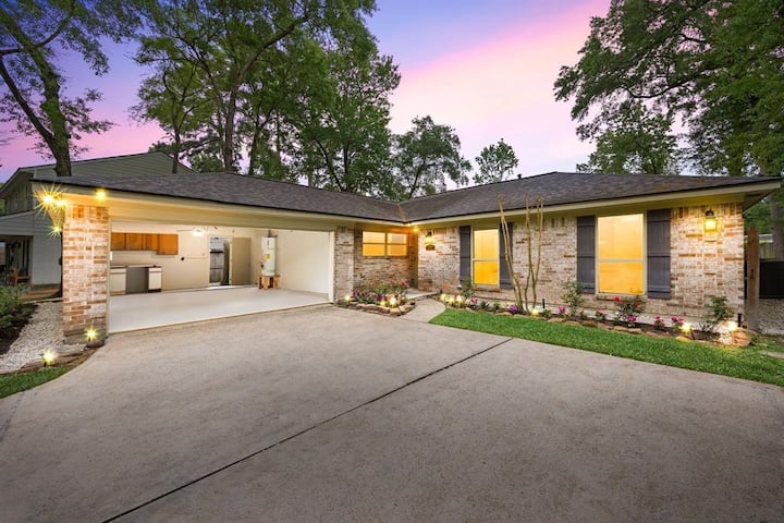Relaxing Woodlands Getaway • Gym, Media & Backyard