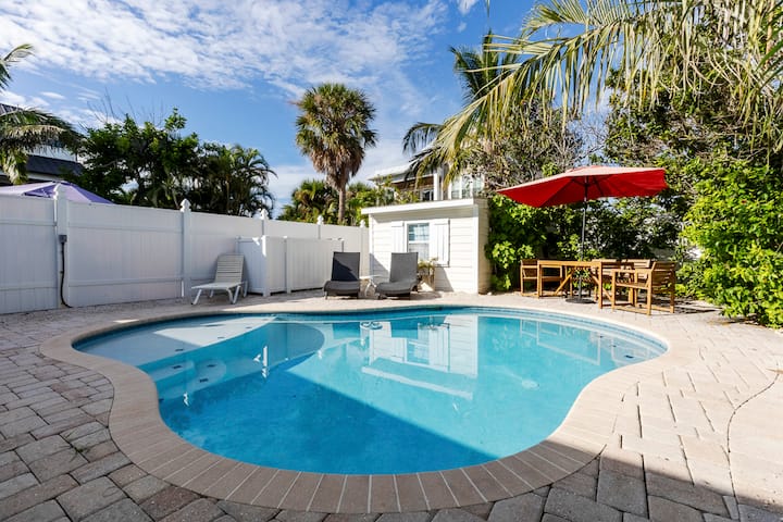 Beach Bungalow- 2 min walk to beach! Heated Pool