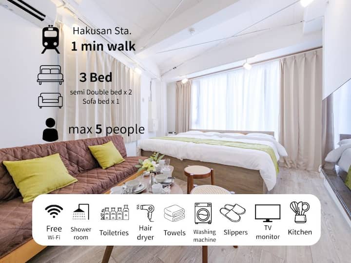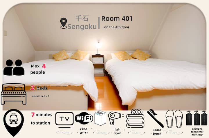 4 beds | 11 minutes from Shinjuku, 18 minutes from Shibuya | 7 minutes on foot from the station | 1st floor with Japanese garden | Maximum 5 people | Within 1 hour from Haneda and Narita