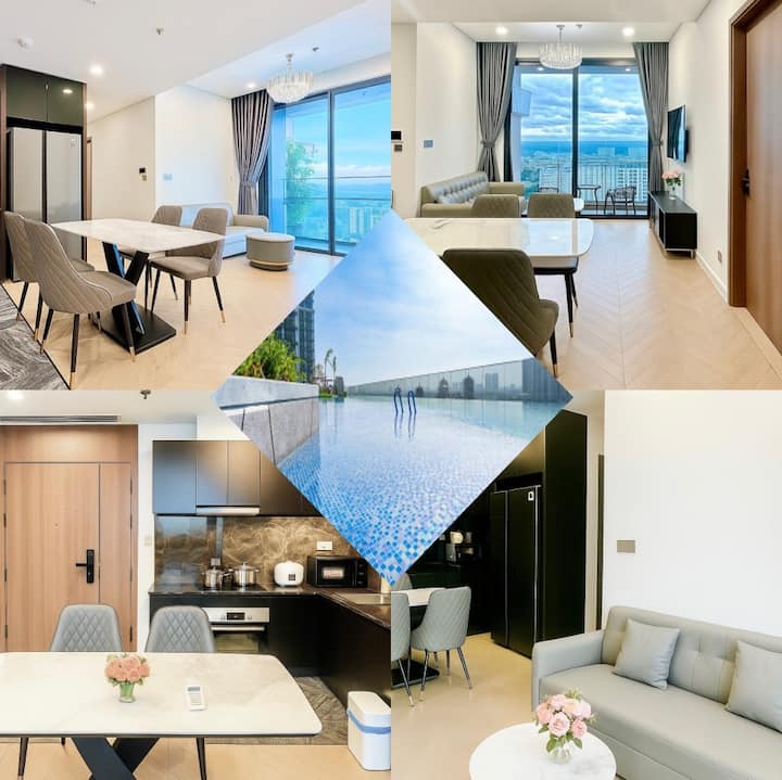 [Korean Host] Ho Chi Minh 2nd District/Lumiere/West/2BR (2 Queens + Living Room)/Infinity Pool/City View/Dryer Available