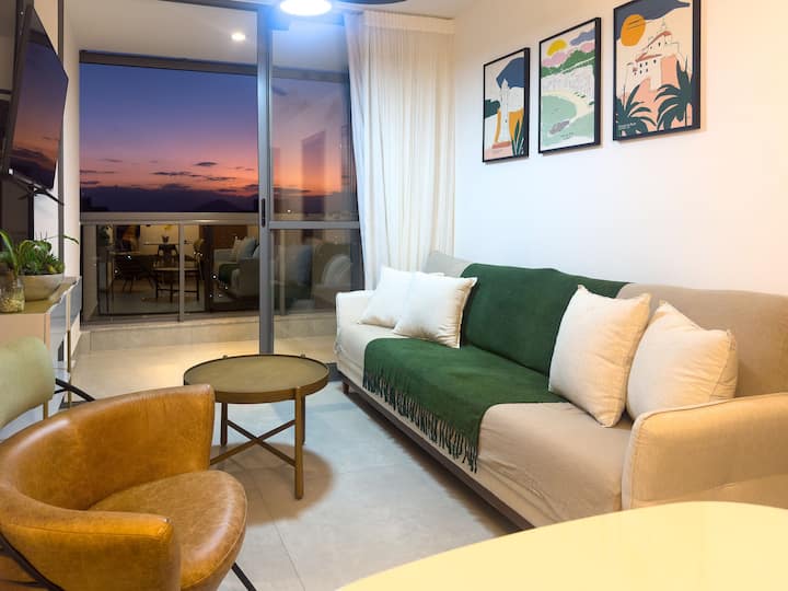 Luxury apartment + sauna/pool/gym and beach 200m away!