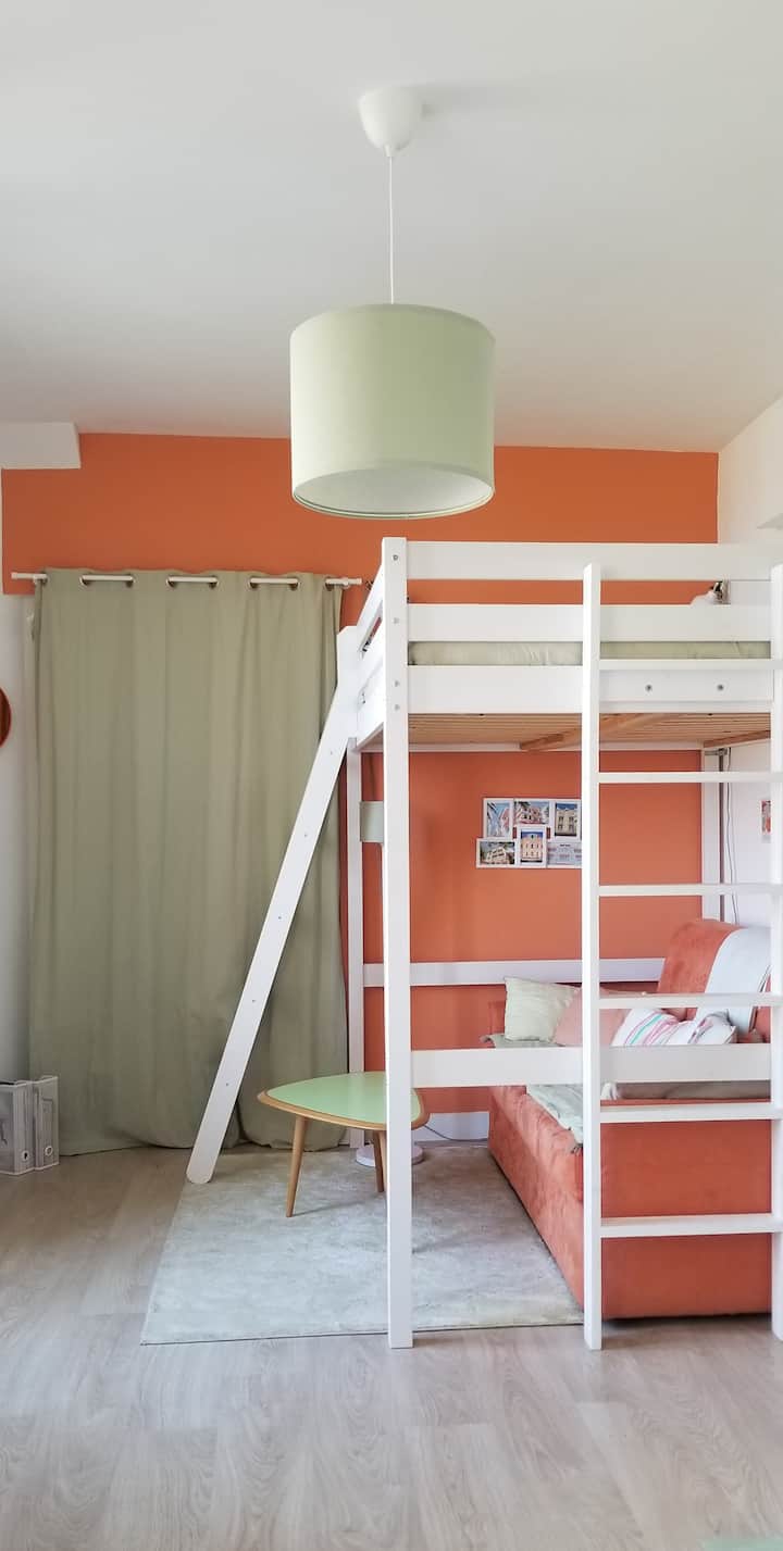 1) Comfortable room, 2 min to train station, 7 min walk to beach,