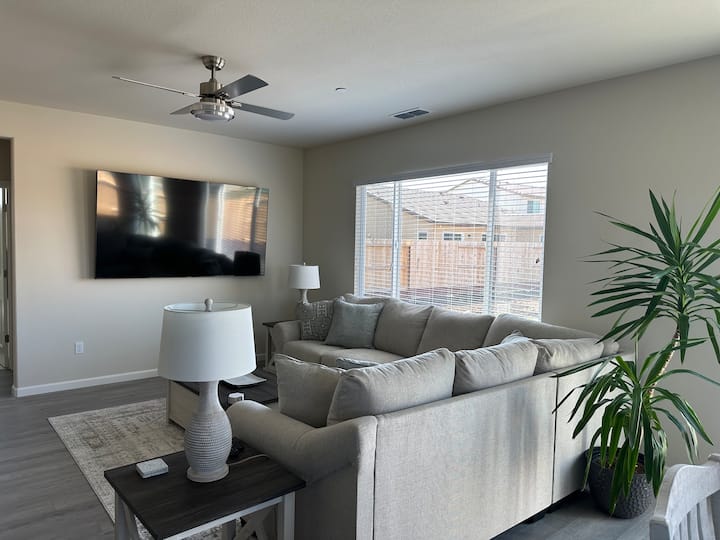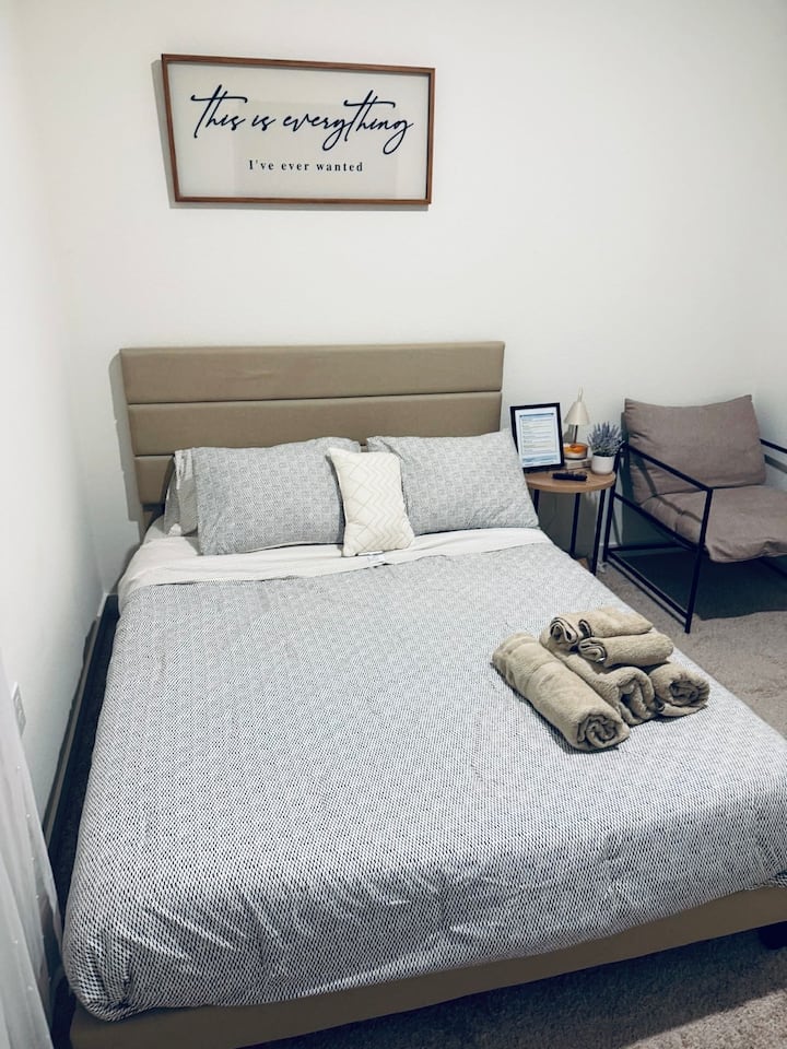 55"TVbedroom with walk-in wardrobe Shared bathroom