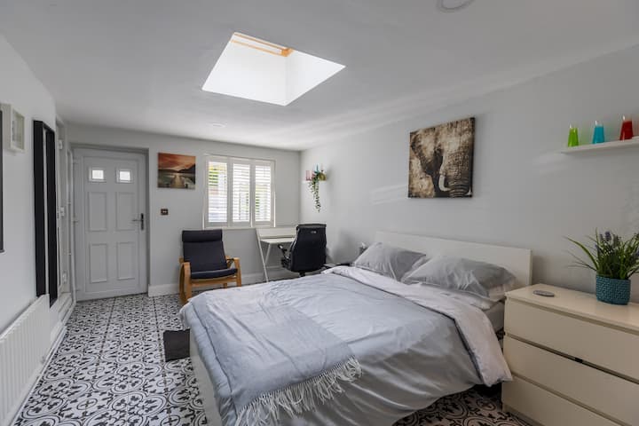 The Annex, a lovely studio apartment with queen sized bed, separate kitchen, shower room, own outdoor space and free off street parking.