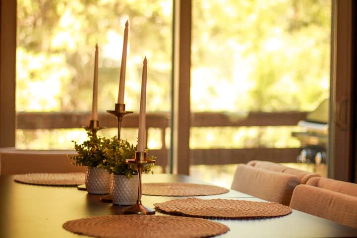Beautiful cabin w/gated yard for Kids/Dogs Spa BBQ