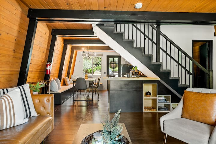 Modern Meets AFrame-Fire Tbl-Walk 2 Lake Path+Pets