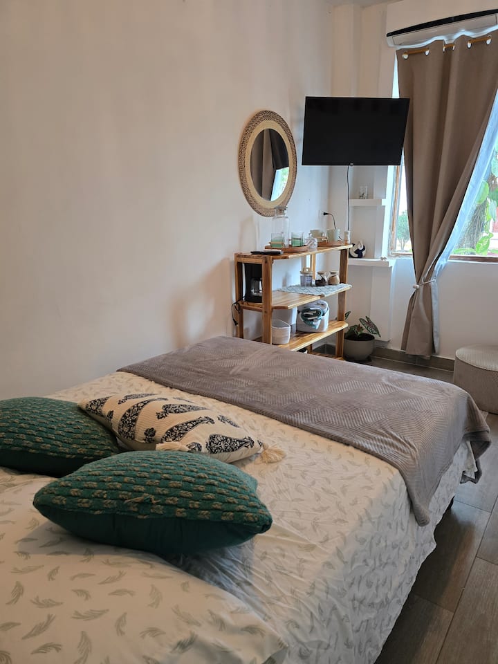 A mini apartment with a bathroom, A/C, and Wi-Fi in Montañita