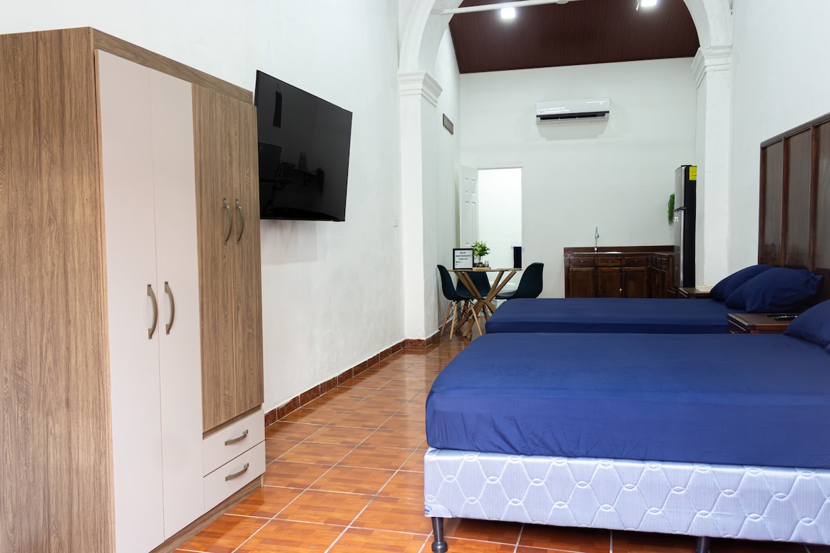 This apartment hotel is strategically located. You'll be staying under the shade of a Maquilishuat tree. Downtown San Salvador is 10 minutes away. In addition, a few blocks away there are restaurants, shopping malls, movie theaters, hospitals, parks, churches, and city exits. This apartment is the perfect scale for travelers seeking peace and quiet. Ideal for long stays, there is a large common area, you can cook, wash and dry clothes, as well as a library.