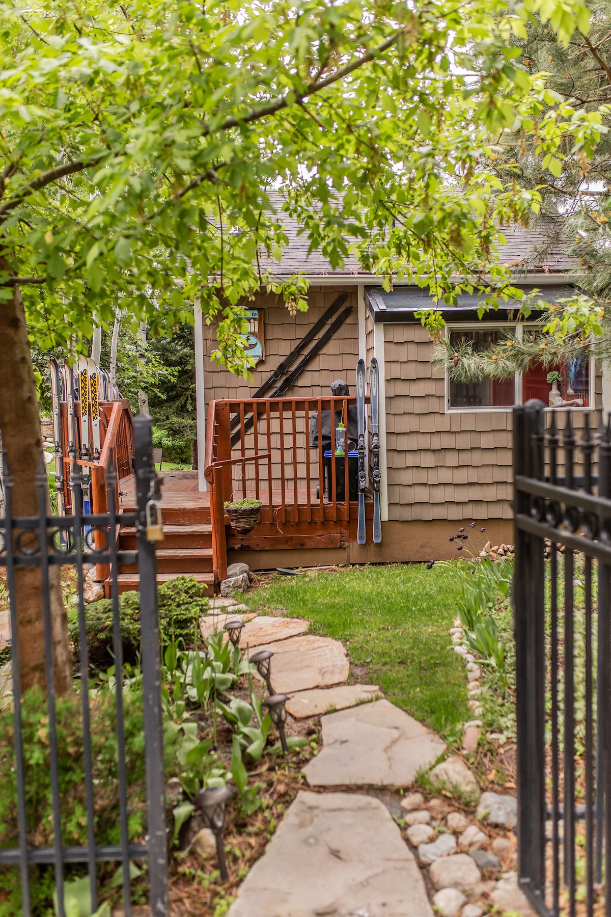 Forget your worries in this spacious and luxurious basement apartment close to everything. High end bedding, steam shower, 3 TV's, high speed WiFi, storage and room galore. Winter sports gear racks and a boot and glove dryer. A full gourmet kitchen, washer and dryer and warm fireplace with thermostat. Award winning garden landscape and covered patio to relax on in spring, summer & fall. Family friendly safe neighborhood. 4 seasons of luxury and memories. You will not want to leave!