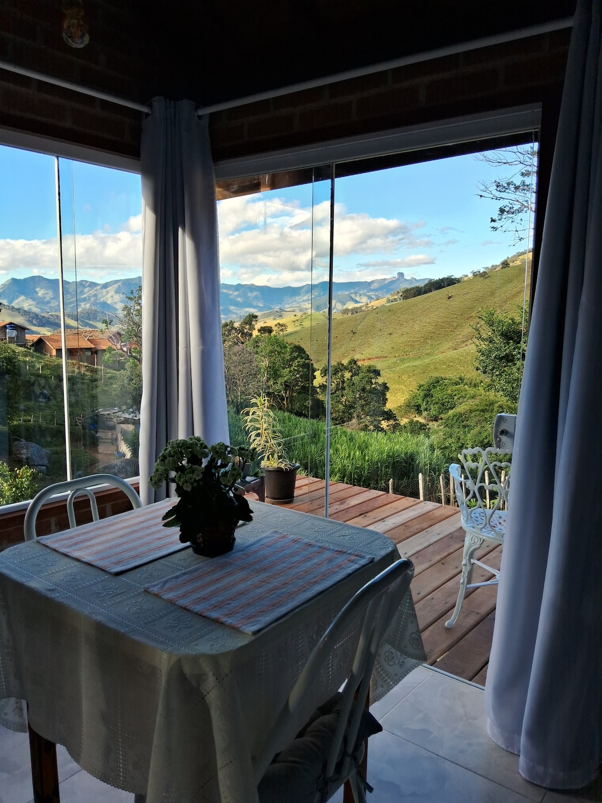 Welcome to our cabin. Here, the idea is simple: disconnect from the city to connect with nature. Wake up to the view of the valley and Pedra do Baú, and at night, admire a sky full of stars. It has a fireplace in the living room to warm the cold days of Mantiqueira, a full kitchen, with a traditional stove and a wood stove for those who enjoy cooking in the rhythm of the mountains. A ground fire in the garden, for long conversations under the stars. A pleasant climate all year round - from the afternoon sun to the cool of the night.