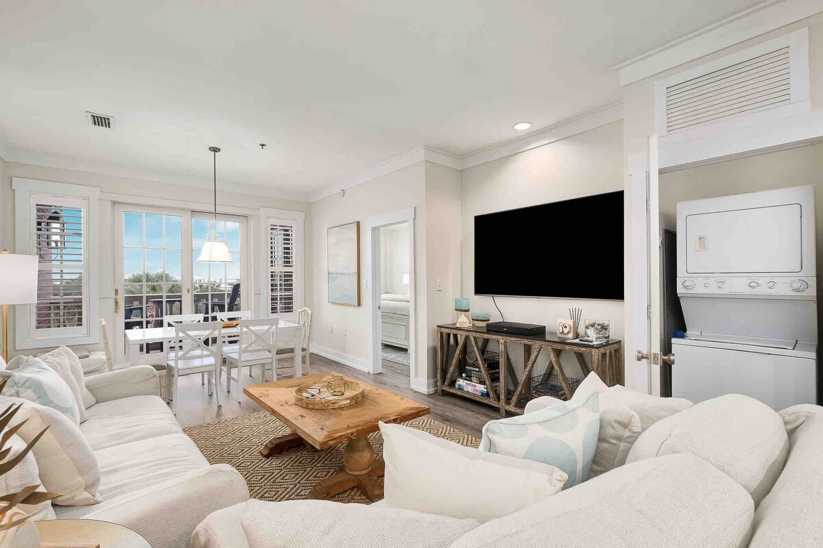 This light filled, second floor corner unit, located in the heart of the Village of South Walton in ever-popular Seacrest Beach, is nestled steps between Rosemary Beach and Alys Beach. It is close to a variety of dining and shopping – and of course the beach, where beautiful sunsets can be appreciated! It’s the perfect getaway destination for two--babymoon, honeymoon, girl's trip. Please contact me for additional discounts for longer stays from Sept - Feb.