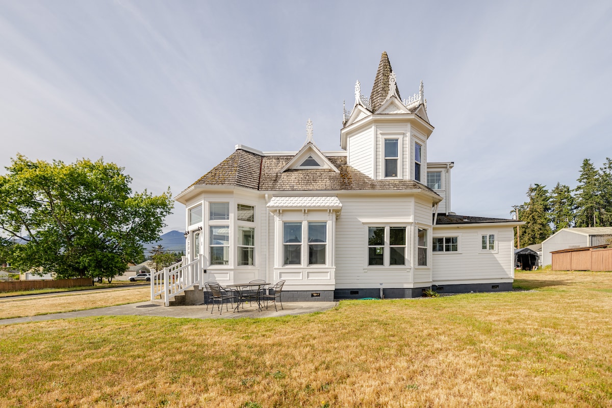 A truly unique treehouse perched 30 feet high among the trees. This amazing structure is attached to 3 large cedars and 1 giant maple using advanced tree tabs that allow the trees to sway gently, providing a natural and immersive experience. The large deck offers stunning views across the Salish Sea to the Mountains of Washington state. With all the modern amenities you could need, it's the perfect place to relax and unwind. Experience the magic and wonder of treehouse living for yourself!