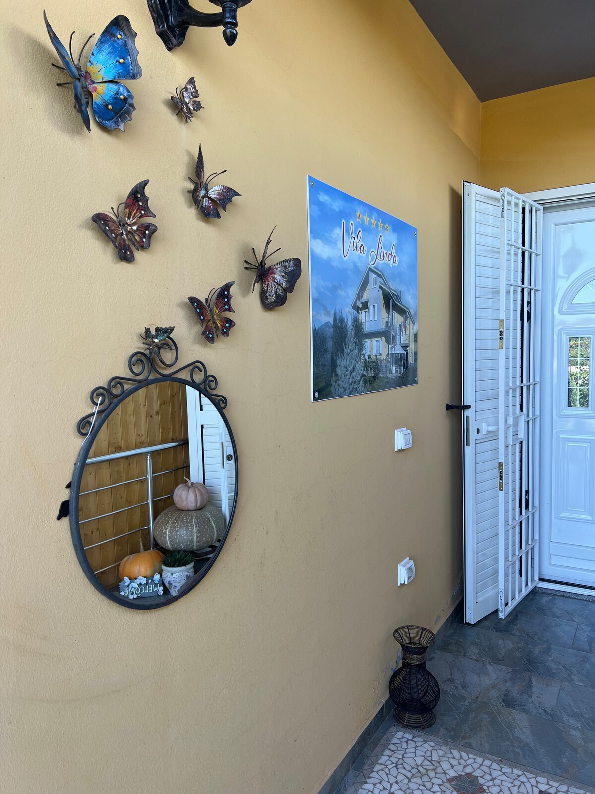 La villa offre una magnifica vista sul lago di Shiroke ed è immersa nella natura. Circondata dalla riserva di pini, ha alle spalle la bellissima montagna di Tarabosh mentre di fronte si estende in tutta la sua bellezza il lago. La vista permette di ammirare sia i tramonti che le albe, di fronte si possono contemplare le Alpi albanesi e in lontananza, dove sorge il sole c'è la città di Shkoder. Situata nella zona residenziale, il centro dista 600 mt ed è raggiungibile tramite strada carrabile.