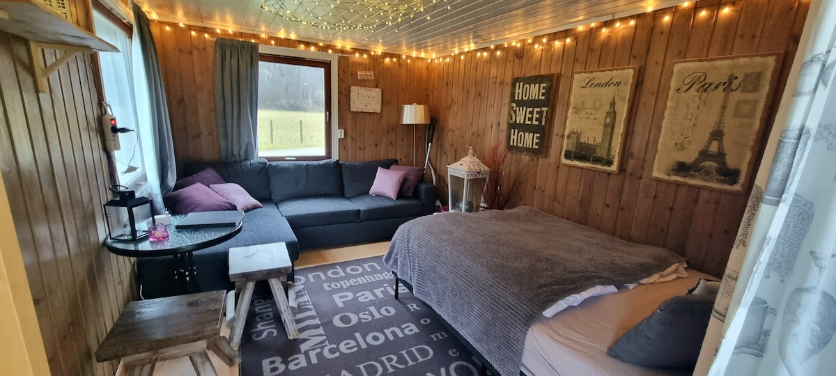 This is a brewery house from 1646, renovated in summer 2020. The house consists of a main room with a cozy living room and a brand new kitchen and well as a bathroom. On the loft there is a new double bed. Firewood free for own consumption (must pick up yourself in garage / woodshed). You can clean out of the apartment yourself or order cleaning (550kr). There are duvets and pillows in the beds, but bed linen must be rented outside for kr. 75 per set. Not sleeping bags.